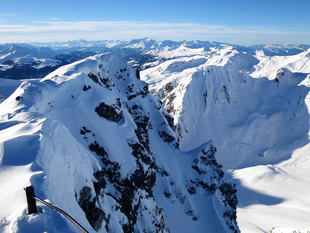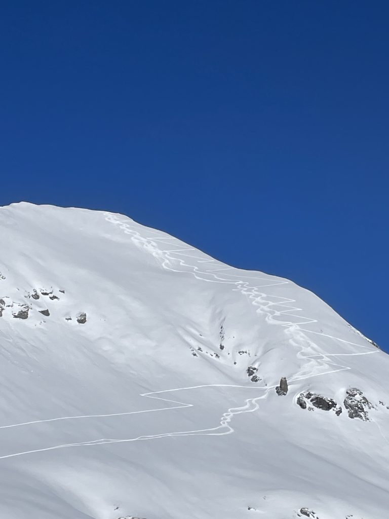 Das Schiahorn wird nordöstlich vom Strela Pass bestiegen. Eine Tour lohnt sich vor allem bei Sulzschneeverhältnissen. Die ganze Flanke ist ca. 35 Grad steil, so dass Harscheisen auf diesem Berg zu empfehlen sind. Ausrutschen beim Aufstieg und bei der Abfahrt ist zu vermeiden! Vom Strela Pass quert man Richtung Osten durch die Flanke auf einen kleinen Felsturm zu den man oben passiert. Von da geht es auf dem Rücken hoch. Es ist mit ca. 30 Spitzkehren zu rechnen. Die Abfahrt folgt entweder der Aufstiegsroute. Man kann aber auch über die Mitte der Flanke abfahren (teilweise 40 Grad). Bei Sulz ein Traum!