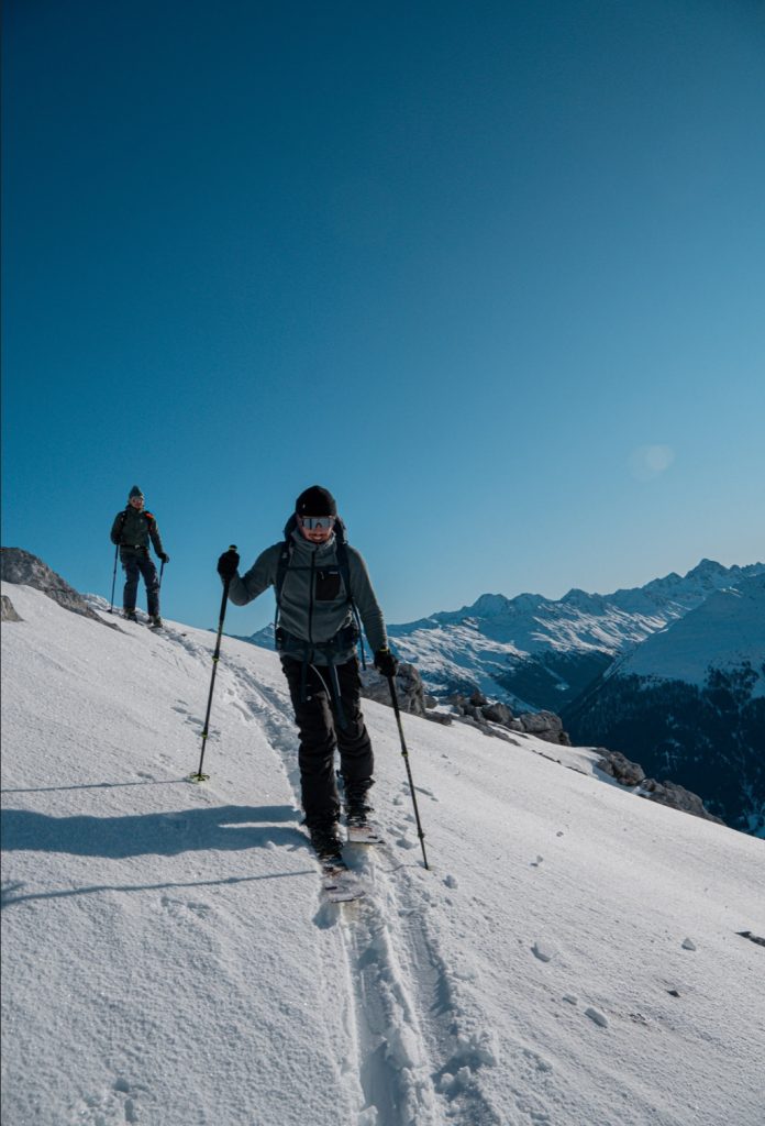 Mit der Schatzalpbahn geht’s erstmal hoch. Wer möchte, kann im Bergrestaurant den Tag mit einem Kaffee starten. Danach geht’s weiter mit dem Sessellift und anschliessend mit einem Schlepplift. Ab Höhe Strelapass, läuft man nach rechts in Richtung Chörbsch-Horn. Trotz großer Beliebtheit wird man hier keinen Massenandrang vorfinden. Die Tour bietet herrliche, lohnende Skihänge in freiem Gelände bei idealer Neigung. Ein kurzer Waldgürtel (ca. 100 Hm) wird auf einem Wirtschaftsweg durchquert, auf dem sich während der Abfahrt gut hinunter schwingen lässt. Ab dem Stafler Berg ist die Orientierung nicht ganz einfach, vor allem bei schlechter Sicht. Ansonsten ist es eine eher leichte Tour, nur eine gute Grundkondition ist wegen der Weglänge von Vorteil. Das Steilstück oberhalb der Stafelalp kann nicht umgangen werden, deshalb Lawinensituation beachten.